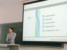 讲座中,周媛总监首先向同学们介绍了康希诺生物股份有限公司的相关情况,并结合自身工作经历,从法律职业发展近况、律师行业特点、传统法务行业特点、新型法务行业特点、攻守兼备的法律人才特点等五个方面依次展开分享。