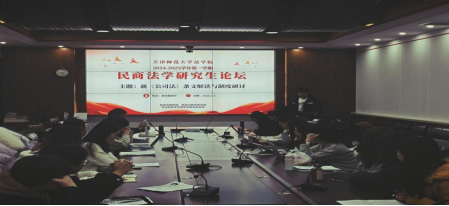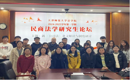 2025年1月3日上午,我院民商法学科硕士研究生学术沙龙活动在澍泽学术报告厅成功举办。本次沙龙以“新《中华人民共和国公司法》条文解读与制度研讨”为主题,旨在增强同学们对《中华人民共和国公司法》新增条文和相关法律制度的理解,并激发对相关制度创新的思考,锻炼和培养学生们的思考能力与创新能力。民商法教研部郝磊教授、郭明龙教授、王春梅教授、何潇老师,以及民商法专业2023级、2024级全体学术型硕士研究生和部分法律硕士研究生参加了本次学术沙龙。