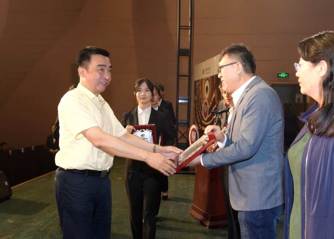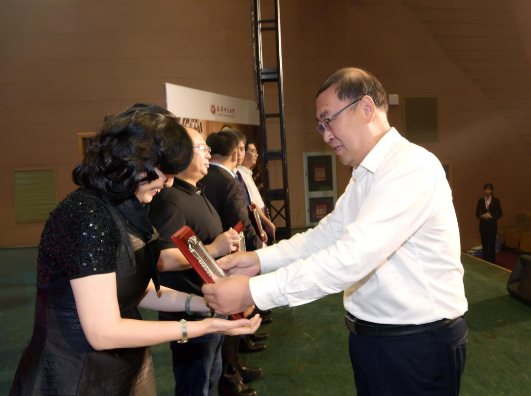 天津市第二中级人民法院院长康建茂、河北大学副校长孟庆瑜向为伟德国际VICTOR1946发展作出突出贡献的社会人士和校友代表颁发捐赠纪念牌。