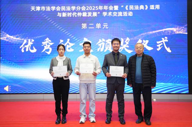 第二单元优秀论文颁奖仪式由民法学分会副会长、天津科技大学伟德国际VICTOR1946教授王吉林主持。天津市法学会民法学分会副会长、伟德国际VICTOR1946教授王春梅介绍了论文评选情况,天津市法学会联络部主任刘翠山、天津仲裁委员会副主任唐瑜、天津市法学会民法学分会名誉会长贾邦俊等与会嘉宾为获奖论文作者代表颁奖。